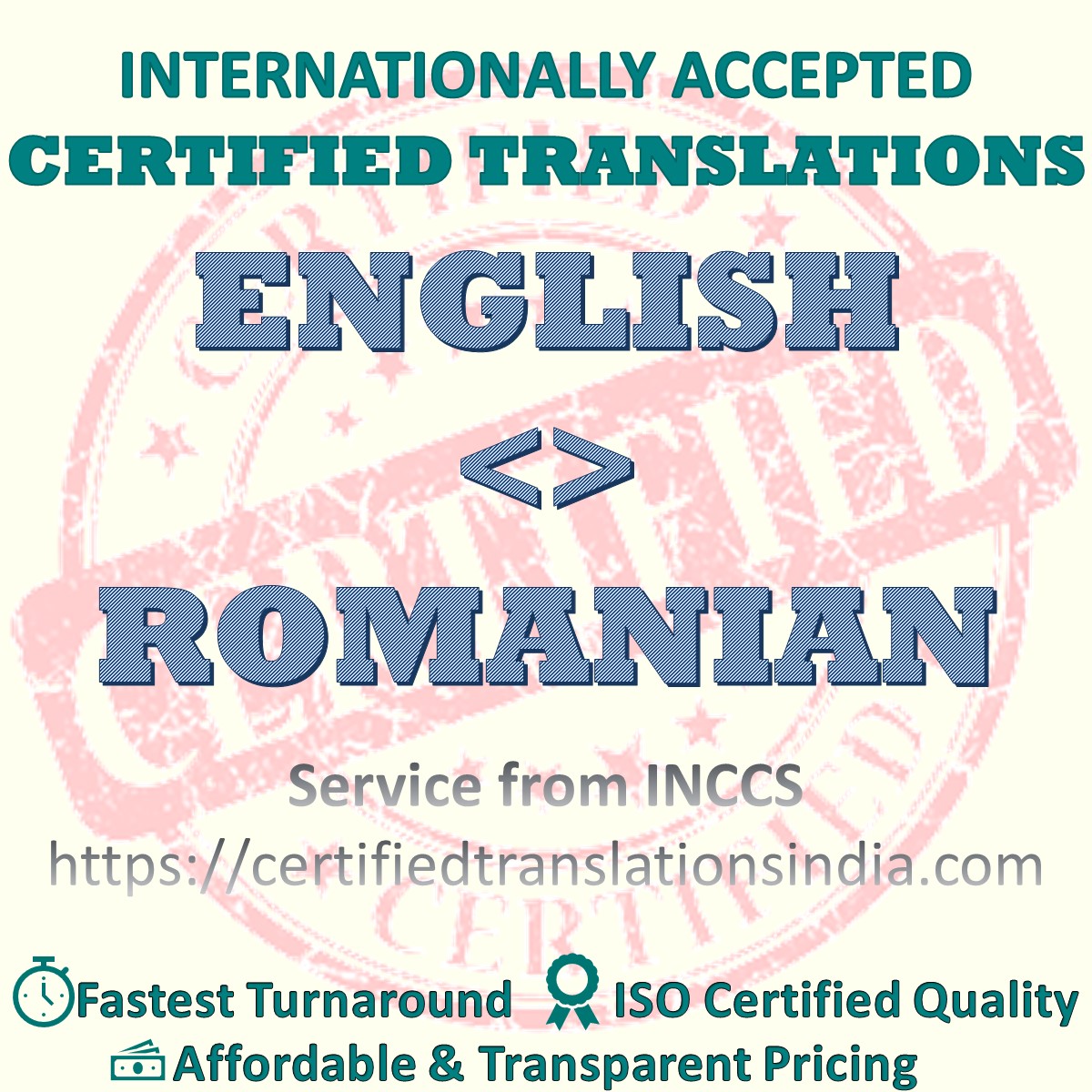 - Best: We are an ISO certified translation agency and our Romanian to English certified translations have zero error ISO quality guarantee. We are the only agency with 100% money back guarantee because we are sure that our Romanian to English certified translation will be accepted worldwide.
